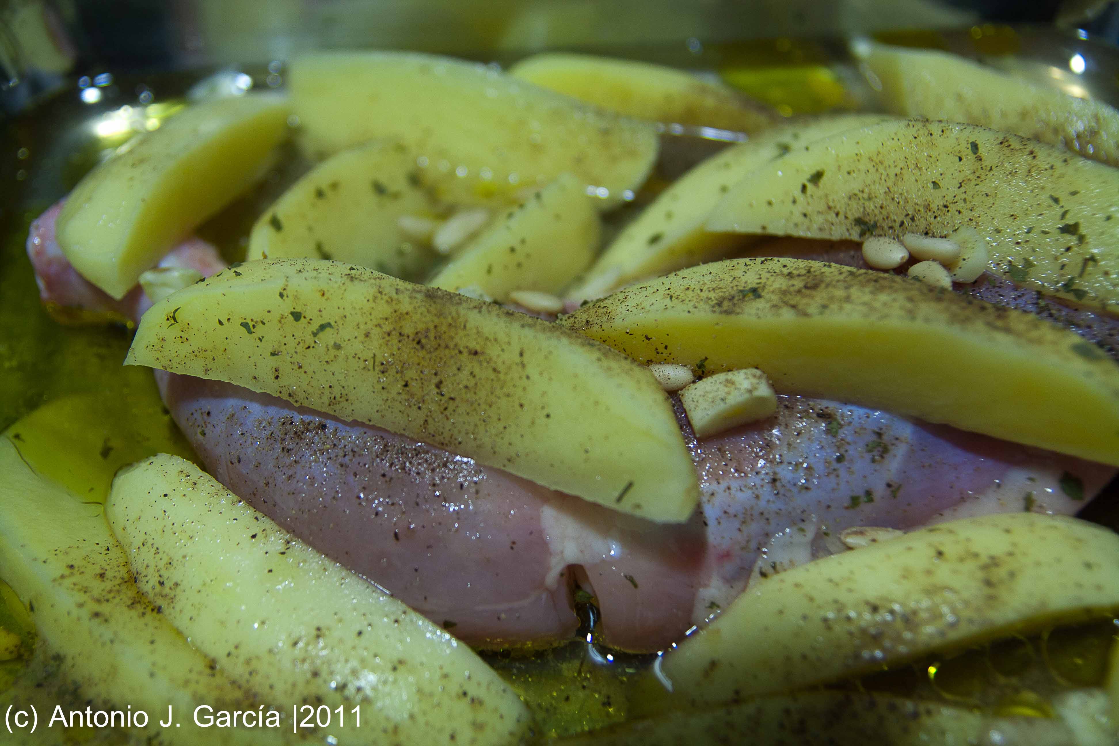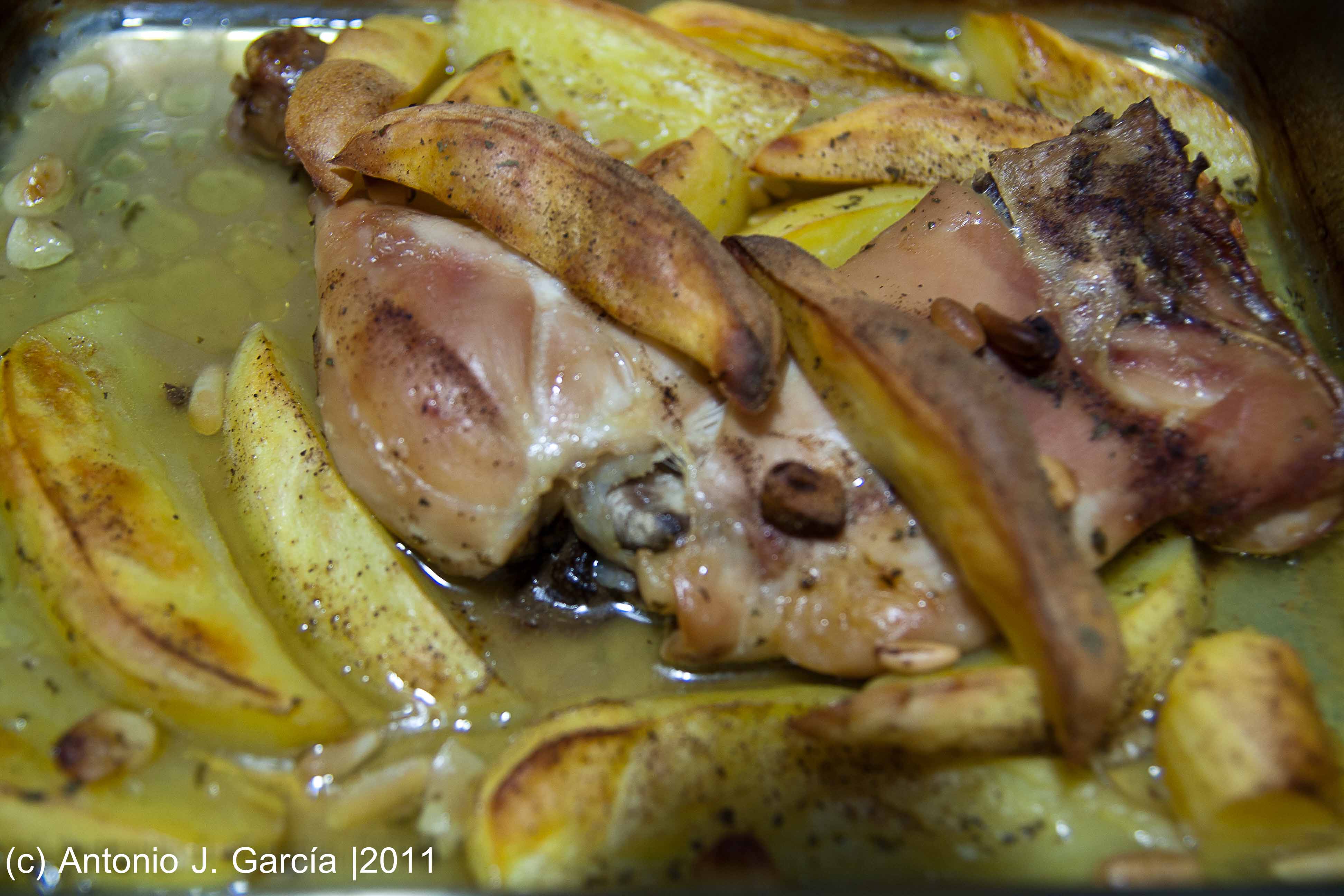 El otro día que andaba inspirado me puse y le hice unas cuantas fotos al asado de pollo con patatas que me estaba preparando para comer.